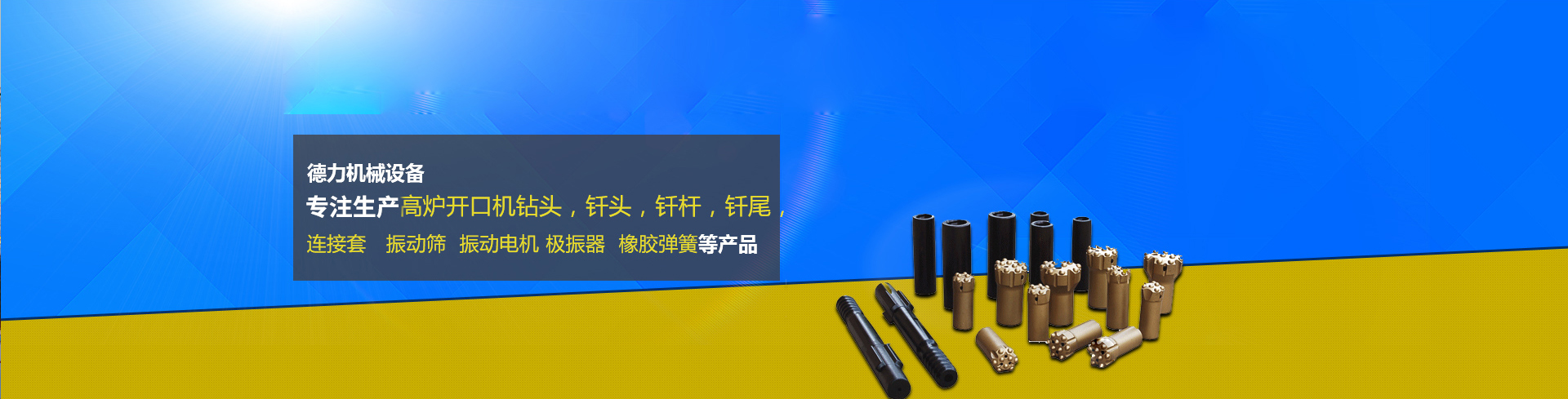 新鄉市德力機械設備有限公司   新鄉市德力機械設備有限公司坐落在新鄉高新技術開發西區。地理位置優越,交通、通訊設施便利。  公司是機械部定點生產**廠家,從事釬具研究生產有著經驗和加工制造能力。并具備比較完善的技術檢測能力,整體實力位于同行前列,  公司專注生產高爐開口機鉆頭,釬頭,釬桿,釬尾,連接套等產品廣泛應用于冶金,礦山,煤炭等行業,產品覆蓋各地  始終堅持運用國際、國內的軟件進行產品設計和開發。......更多>>